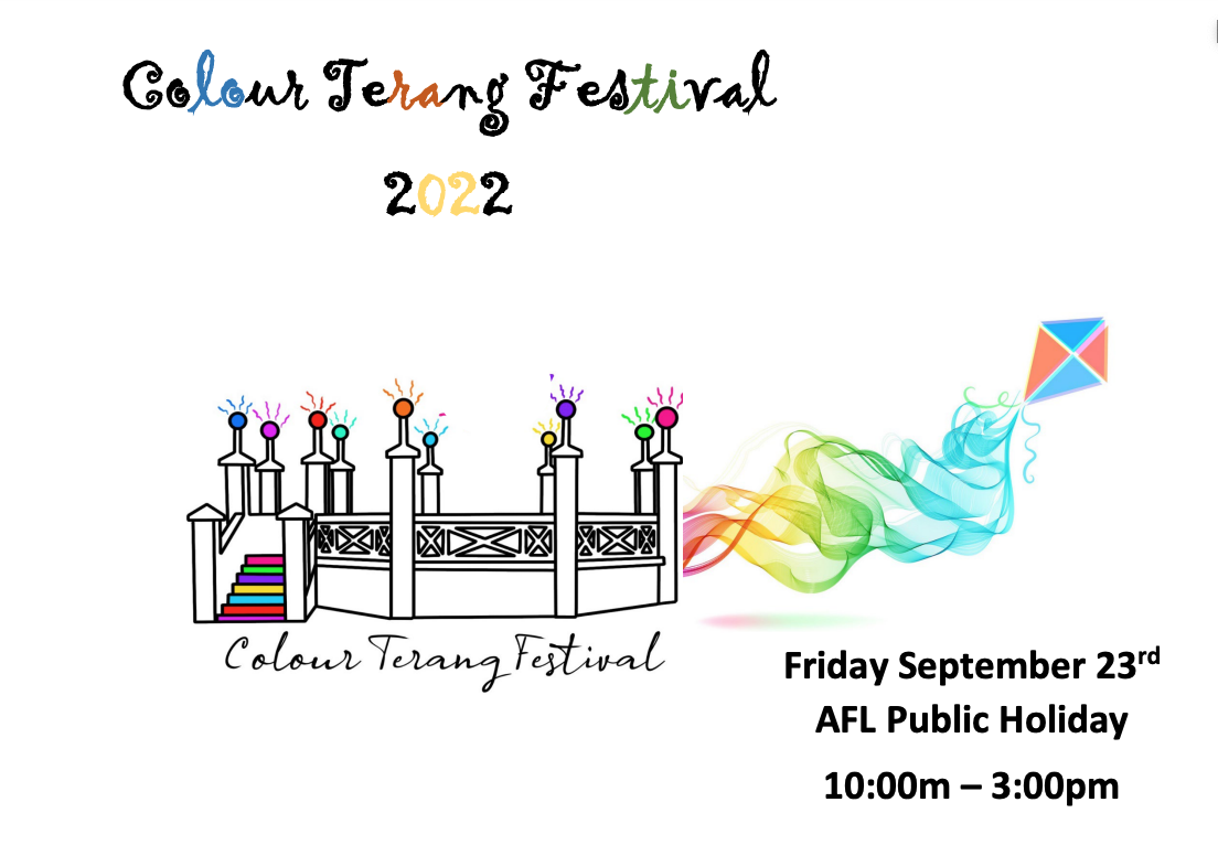 Get ready for the most vibrant family festival of the year! Join us at the Colour Terang Festival on Friday 29 September 2023 and immerse yourself in a world of bright colours, music, and good vibes. Celebrate with people of all ages from all walks of life. Don’t forget to wear white and get ready to be covered in colours at the Colour Splash! Let’s paint the town red, blue, yellow, and everything in between. Can’t wait to see you there!